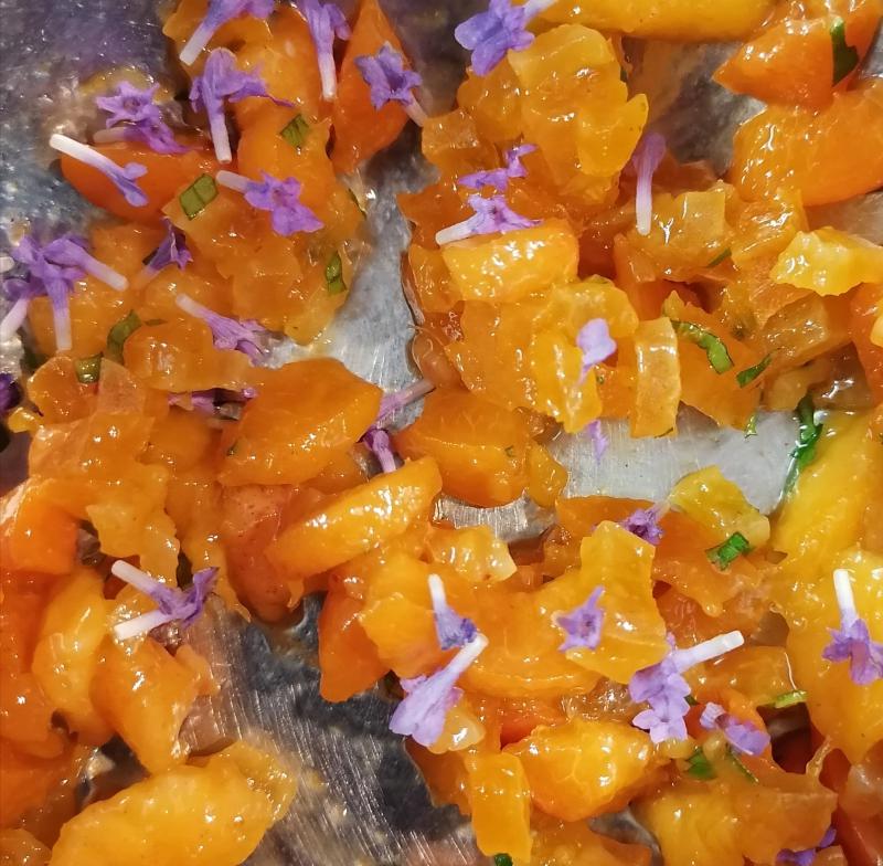 Nougat glacé aux fruits d'été à la verveine et lavande, abricots, pêches