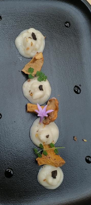 Crémeux de topinambour aux truffes, champignons sauvages, jus de volaille.