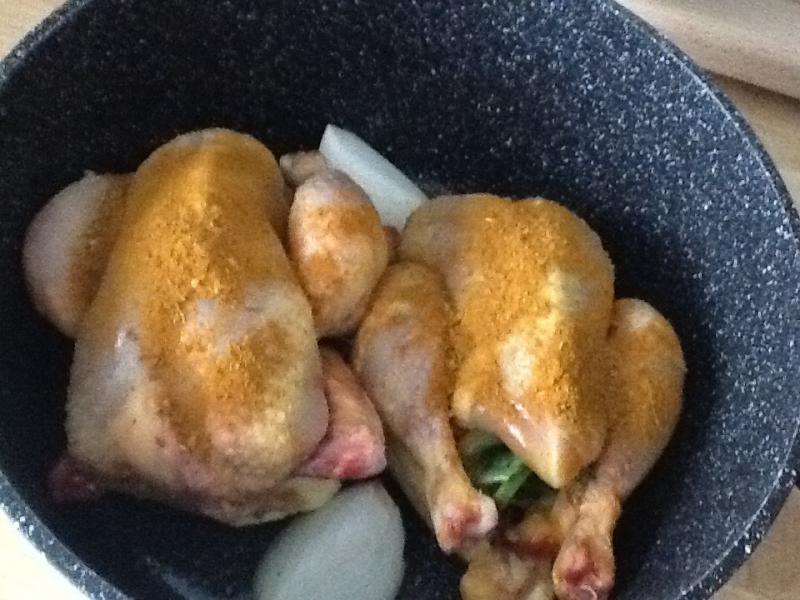 ceci est un peu plus gros que des poussins ....je les ai farcie avec oignons poivre sel et basilic et par dessus des épices qui vienne de Turquie
