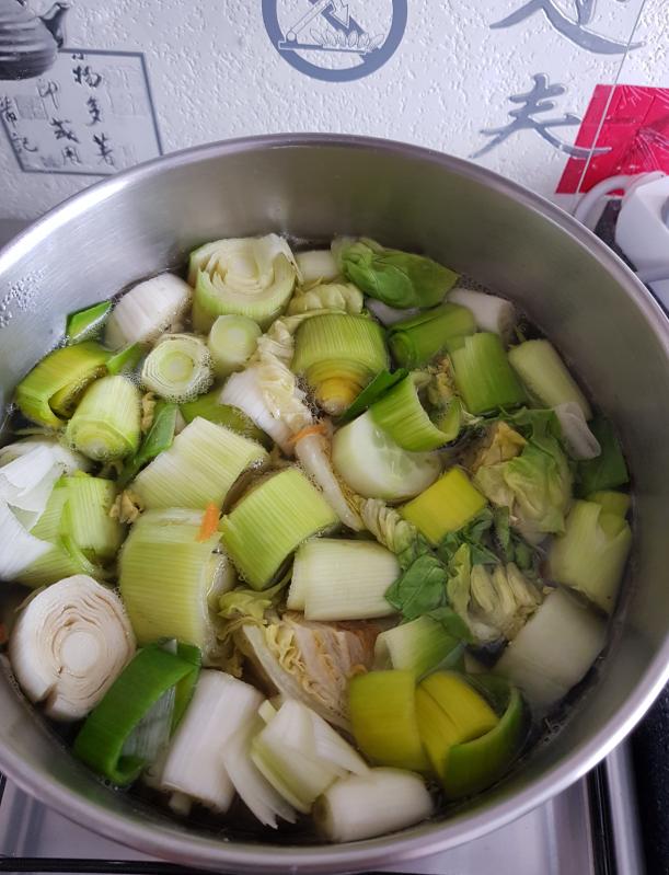 Bonjour Nous sommes jeudi ,et vendredi en général je vais chez mon producteur pour mes légumes....donc comme j'avais au frigo un fond de laitue un concombre quelques que carottes et trois poireaux Jai tout nettoyé et un bon potage Belle journée Lisette