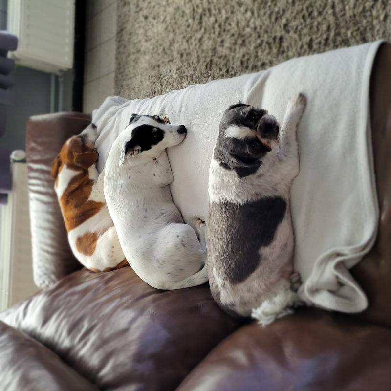 Mais toujours ensemble et syr cette photo ils sont mise de plus vieux au plus jeune. Quand je dit le blanc !! Cest un sacré farceur toujours prêt a mettre la boule de snoopy en dessous les armoire puis il fait l'innocent hi hi hi Et j'ai encore beaucoup des histoire a raconter ... Mais sa sont des amours et heureusement qu'il sont la