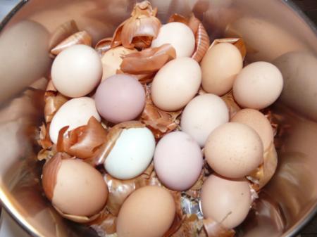 Chez moi c'est pas Paques quand il y a pas des oeufs colorée sur ma table le Dimanche de Paques .