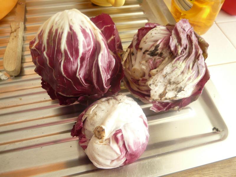 Salade Trévise du jardin....et oui j'enai manger tout au long de la saison. Maintenant's j'ai repiqué de l'escarole .....la salade de hiver. J'ai semer ce matin la salade de blé .