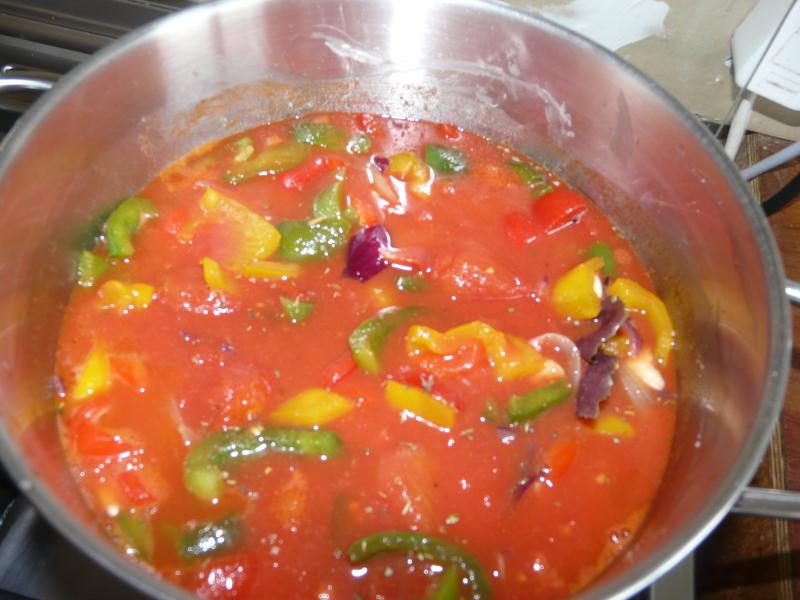 Le congelateur se vide,pour faire la place a la nouvelle saison....et on découvre des trésor ..comme des poivrons tricolors ....ni un ....ni deux....hop une bonne sauce Provençale que je prépare avec Oignons,ail basilic et herbe de Provence +tomates sel,poivre et basilic.