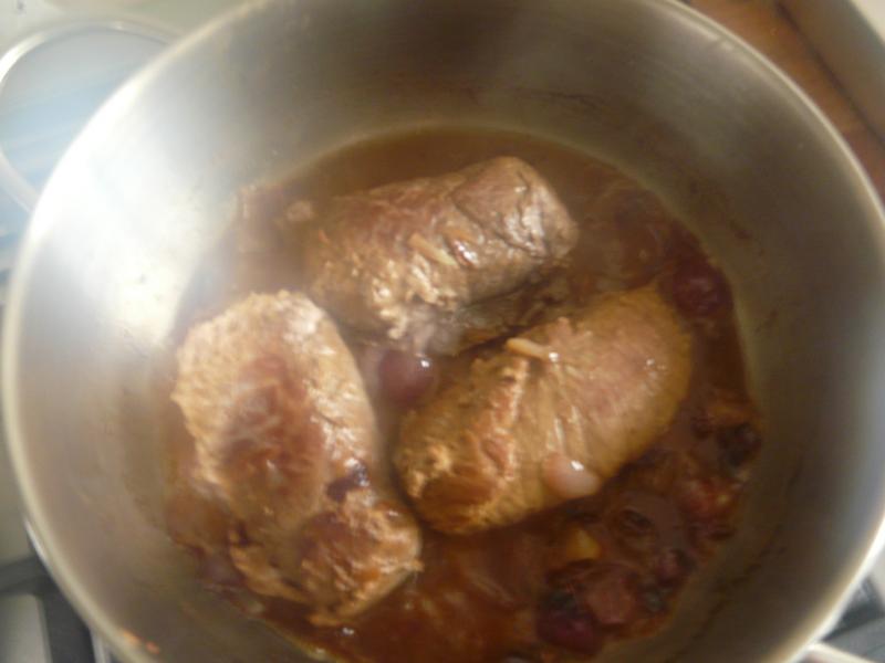 Dans un peu de matièrre grasse je fait revenir un oignon rouge,je fait risoler mes Oiseaux de chaque côté ....je arrose avec du café,et je laisse mijotée une bonne 30min.Je ajoute un peu de crème.