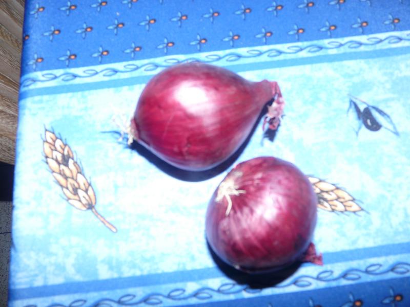 Puis je coupe grosièrrement mes deux oignons rouge,elle donne plus de goût
