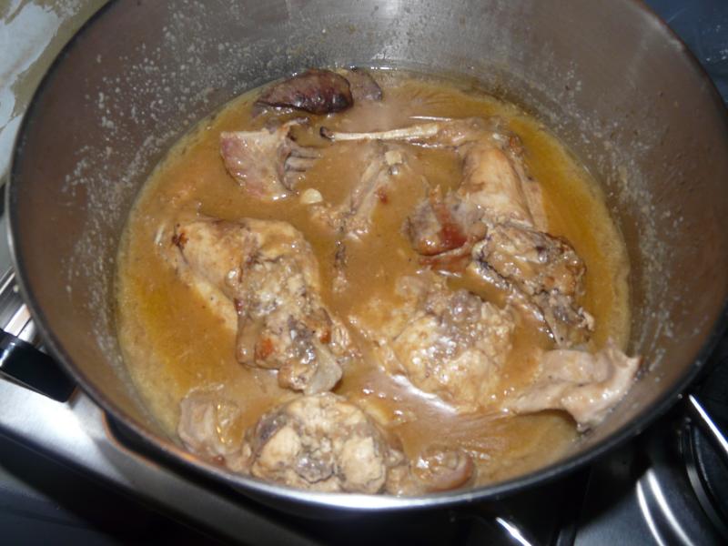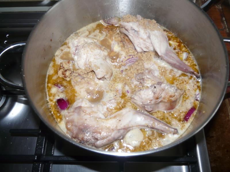 puis je vide le spéculoos sur le lapin,et je laisse mijotée 1h30 sur un feu doux