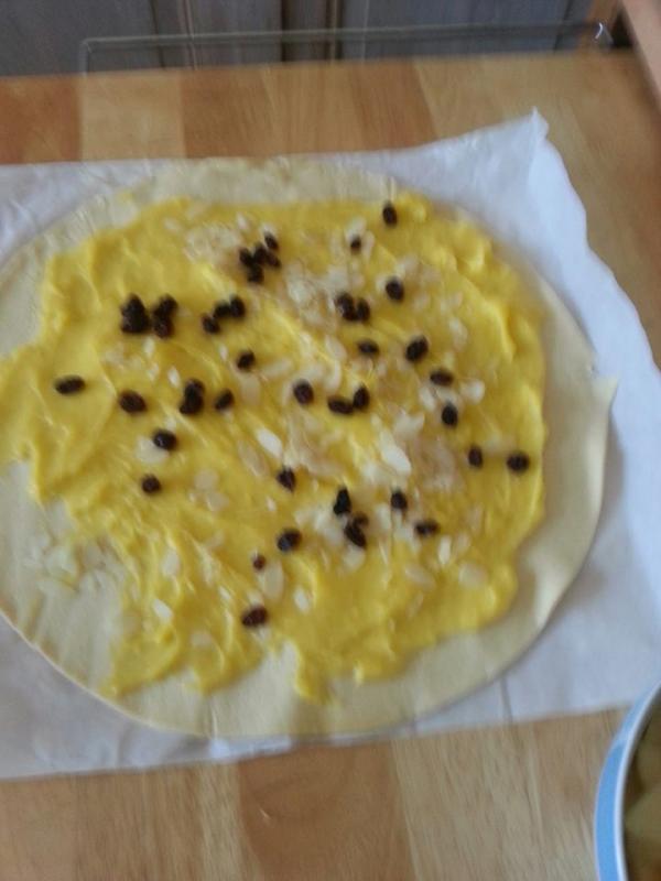 Pâte brisée fait une crème patisièrre j'ai des pommes et des raisin sec