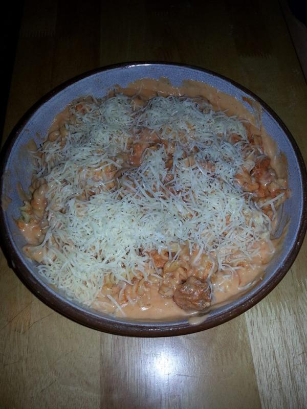 Chez moi rien ne se perd......avec une bonne reste de sauce bolognaise,pas asser pour plusieur ....j'ai ajouté de la crème (pour moi light) du fromage genre Emanthale rapé entre des couches des pâtes (spirelli) et sous la grille et voila un bon soupé et pas chèr !