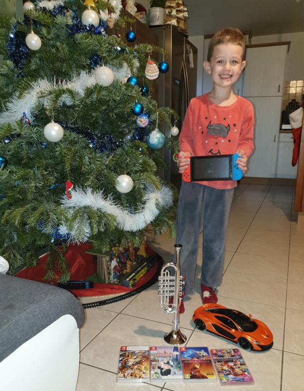 Et voilà Léo heureux d'avoir eu ces cadeaux !!!