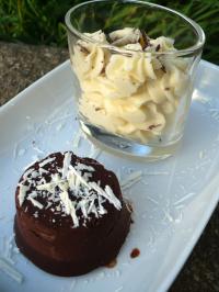 Mettez éventuellement en poche à douille et disposez dans des verrines ou des ramequins (ou bien répartissez à la cuillère). Servez très frais.
