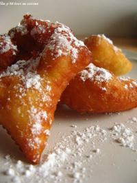 Chauffez l'huile de cuisson, plongez-y les bugnes et lorsqu'elles sont bien gonflées et qu'elles remontent à la surface, égouttez-les sur du papier absorbant. Saupoudrez de sucre glace, puis laissez refroidir avant de déguster.