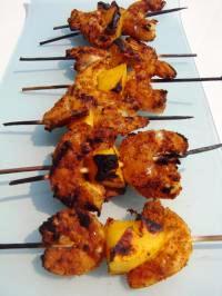 Brochettes de Crevettes au Curry et à la Mangue
