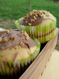 Séparez votre pâte dans deux bols. Ajoutez le cacao en poudre dans l'un et le sucre vanillé dans l'autre. Placez vos caissettes à muffins dans un moule alvéolé spécial muffins pour qu'ils gardent une jolie forme. Déposez des cuillères à café de pâte en alternant jusqu'à mi-hauteur. Saupoudrez d'amandes hachées et enfournez 20 à 25 minutes.