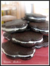 Pour 20 Oréo : 85 g de cacao en poudre sans sucre (un peu plus pour saupoudrer le plan de travail) Extrait de vanille en poudre 100 g de farine 200 g de sucre 1 œuf 120 g de beurre 1 pincée de sel Pour le Fourrage (à sortir la veille du réfrigérateur) : Extrait de vanille en poudre Extrait de vanille liquide 150 g de sucre glace 60 g de beurre 60 g de margarine