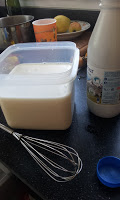 1 l de lait entier chauffé maxi 40 degrés ajouter 1 yaourt du commerce nature 4 cuilleres a soupe de lait en poudre(sucre si vous le desirez) Mélangez cette préparation Versez ds les pots Mettre dans un four à 50 degrés pour 4h Laisser refroidir au four Sortir les yaourts Couvrir et placez au réfrigérateur