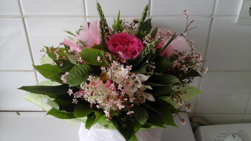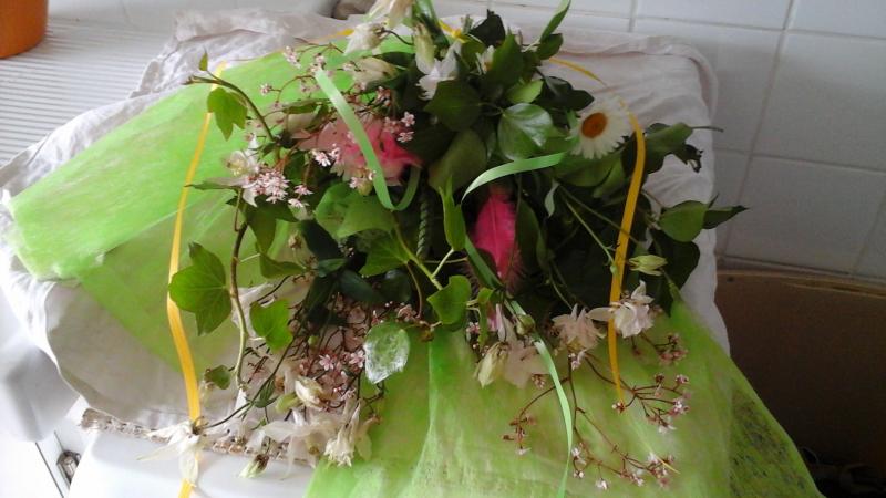 J’ai réalisé ce bouquet rond pour la fausse mariée le mari de notre fille