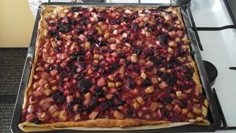 Tarte rhubarbe et fruits rouges en mélange