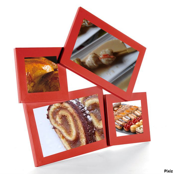 Après la coupe de champagne et les petits fours salés brochettes st jacques sauce corail dinde rotie au mogettes salade fromage buche chocolat et petits fours
