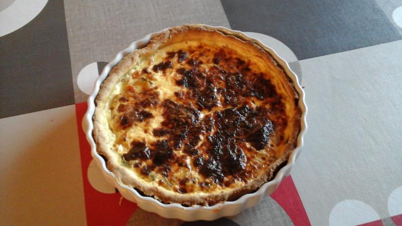J'ai fait une pâte brisée 250 g farine 100gr beurre 1 pincée de sel 1 oeuf 3 cuil à soupe d'eau froide pulser l'ensemble des ingrédients qq minutes dans le bol du mélangeur