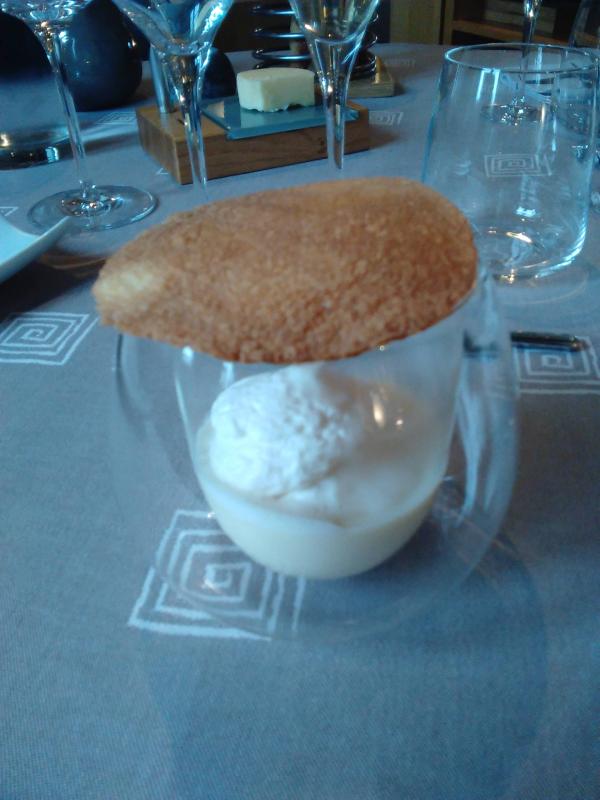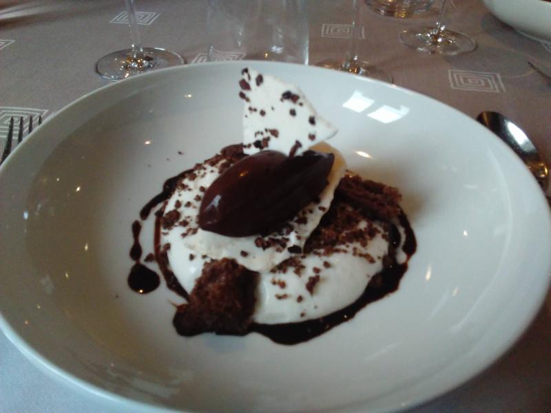Mousse de lait avec déclinaison de chocolat en glace et crême