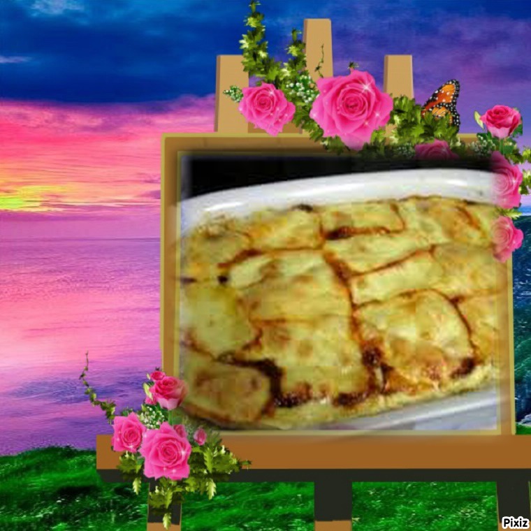 Des pommes de terre (encore de l'année dernière variété safrane ) je vous les conseille .... Cuitent à la peau épluchées coupées en rondelles J'ai alterné les couches avec du fromage à raclette qu'il me restait Une demi briquette de crême au four 30Mns C'était bien bon