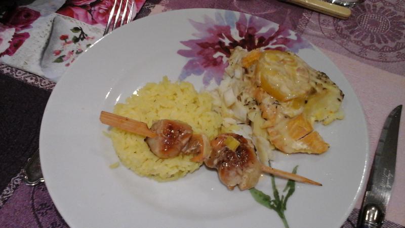 le poisson cuit en papillottes brochette st jacques juste poêlée