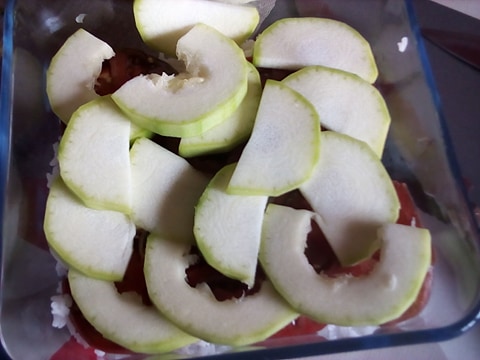 J'ai utilisé une petite courgette deux tomates