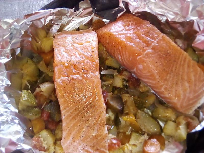 en papillottes j'ai mis 1 louche de rata sous mes pavés