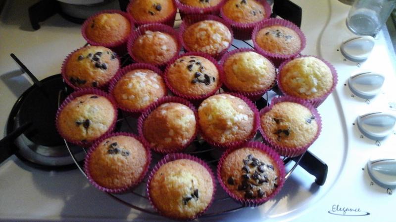 Des jolis muffins pépites chocolat et sucre perlé