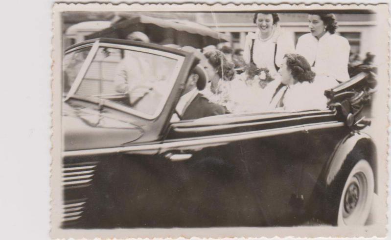 En feuilletant un ancien album de famille La soeur de mon papa avait était reine du comice cantonal en 1950 environ À gauche sur la photo dans cette superbe voiture