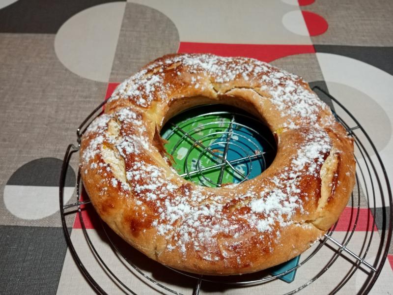 - Un fois votre brioche au yaourt sorti du four, badigeonnez la surface avec de l’eau. Ensuite, démoulez-le gâteau brioche au yaourt et saupoudrez de sucre glace.