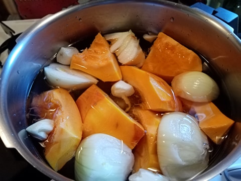 je mets tous mes ingredients dans la marmite les épices etc l'huile d'oilve