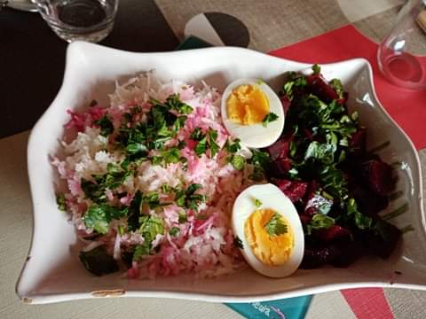 Un radis gris râpé et des betteraves que j'avais faite en conserves