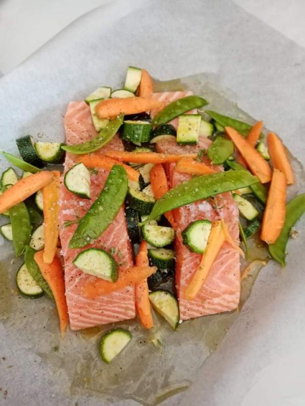 Du saumon et des légumes du  jardin