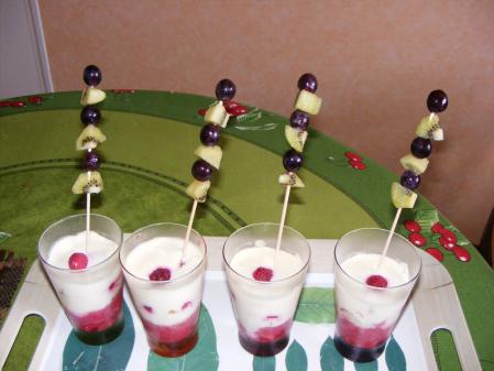 et j'ai ajouter des brochettes de kiwis/ raisins