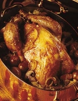 pintade aux champignons frais/haricots