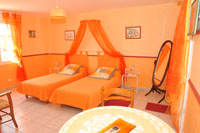 chambre jaune et orange! de bon goût!