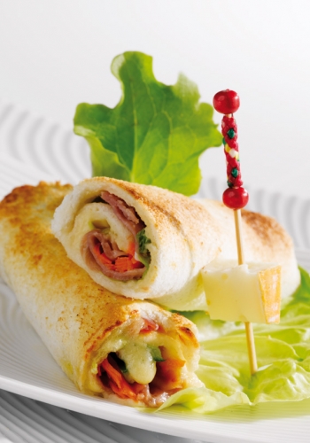 Nems de légumes et jambon fumé au LivarotEntrée