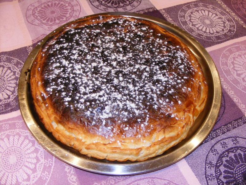 Mais Non!!! pas de la galette! mais tout simplement une galette des rois aux pommes revenues dans du beurre salé et un peu de sucre roux garnir votre 1ére pâte, avec un pinceau mouiller les bords sur 2cms environ recouvrir de l'autre pâte et dorer au jaune d'oeuf ou lait au four