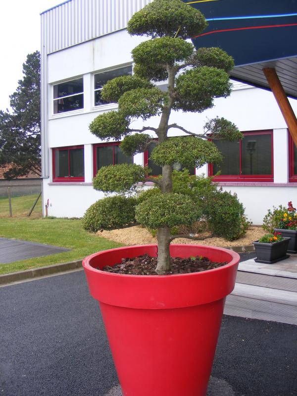 A l'entrée du magasin 2 beaux buits tailler façon topiaire président