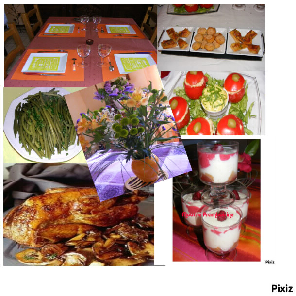 Nos amis sont arrivés avec ce joli bouquet au centre de la photo minis cakes apéritable tomates printanières au thon pintade fermière aux haricots verrines de chocoframboisine