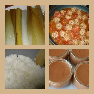 Cet été des tomates misent en conserves qq boules de chair de notre fabrication avec riz thaï le tout passé au four 45mns des poireaux vinaigrette de la crême chocolat '' maïzena un menu tout simple
