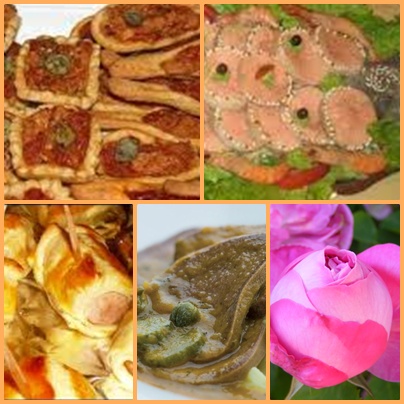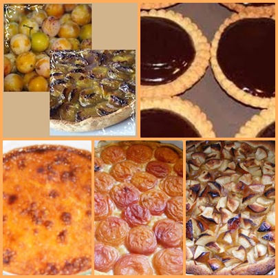 feuilleté variés saumon/macédoine langue sauce piquante purée salade fromage les desserts aux choix tartes sablées aux pommes ou prunes ou abricots minis tartelettes au chocolat fleur de sel cêmes aux oeufs