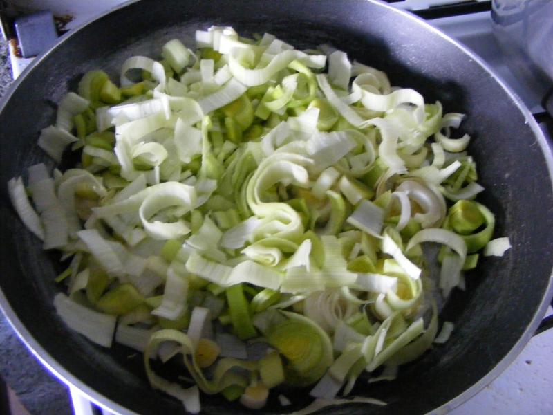 détailler le blanc de poireaux en petits rondelles et le faire revenir dans l'huile d'olive (translucide pas doré!!!)