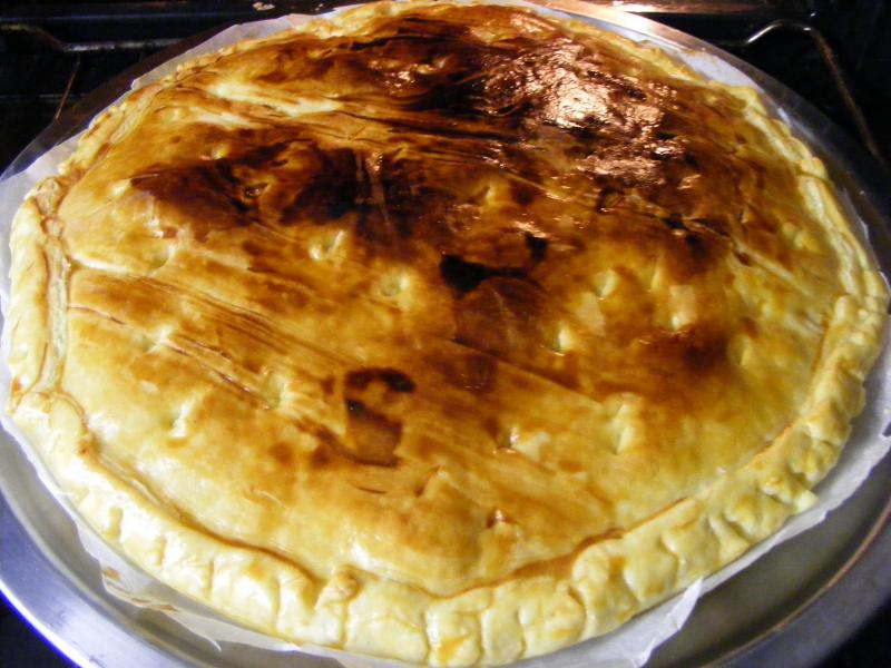 mettre la pâte feuillettée par dessus souder les deux pâte ensemble piquer la pâte de nouveau dorer au jaune d'oeuf laisser reposer 30mns au réfrigérateur enfournez 200° 45mns selon four