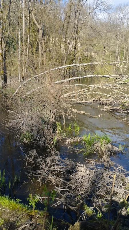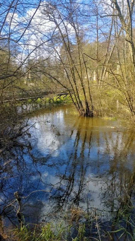 Notre balade commence. Le moulin reste caché derrière les arbres, mais tout autour, la nature raconte déjà son histoire.