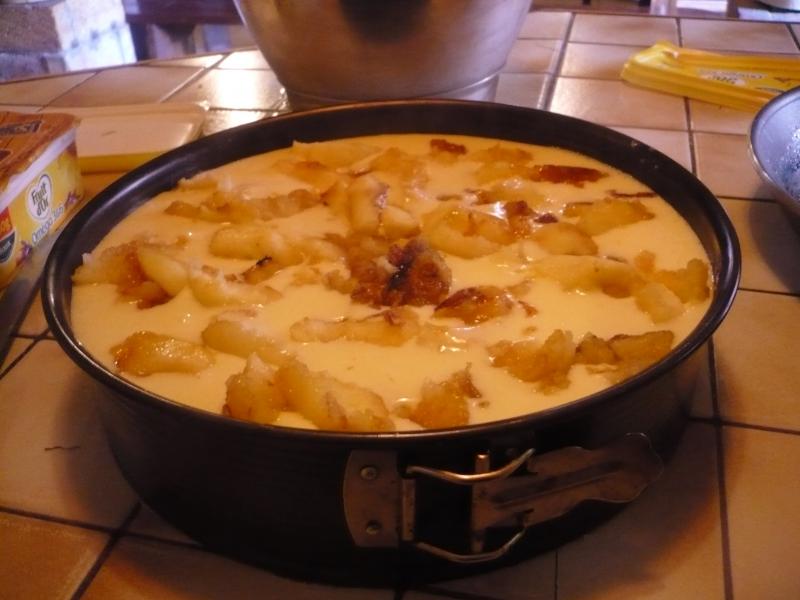 Ce cheesecake est délicieux, dernièrement je l'avais cuisiné aux pêches (Cheesecake aux pêches. ) et là, ce sera aux pommes, avec les fruits de notre jardin(les pêches aussi)