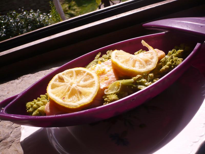 Le chou romanesco, ramassé le jour même au potager, sera lavé à l'eau vinaigrée détailler en bouquet et cuit à la vapeur 15 mn(tout se mange dans ce légume)