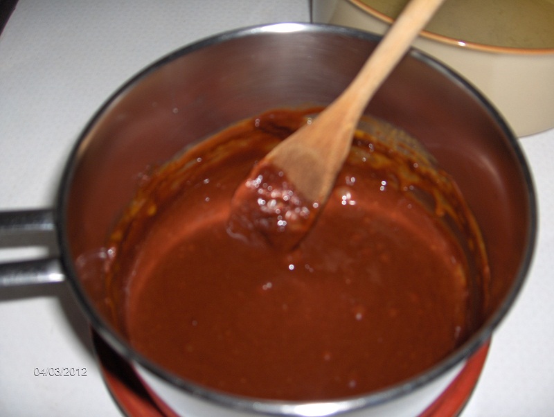 4 bâtons de chocolat 4 oeufs * Faire fondre le chocolat au bain-marie ( voir - lien - ) * Monter les blancs d'oeuf en neige. * Verser les jaunes d'oeuf sur le chocolat fondu en mélangeant énergiquement.